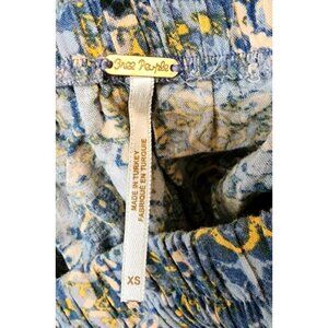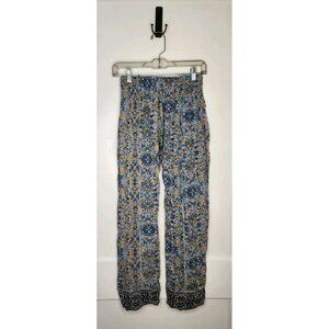 Free People Size XS Blue Mandala Paisley Linen Blend Pants Stretch