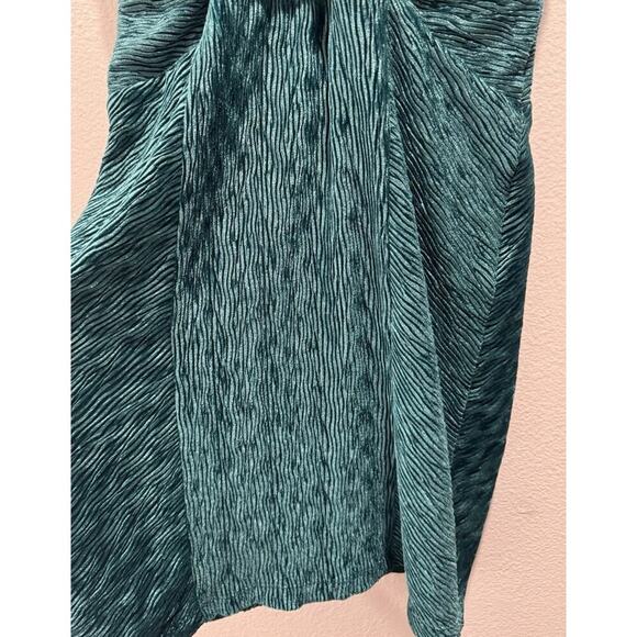 Free People Size XS Green Textured Velvet Dress Sleeveless Deep V Neck Sexy Boho