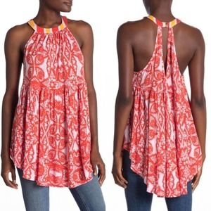 Free People Size XS Mimi Sleeveless Tunic Orange White Halter