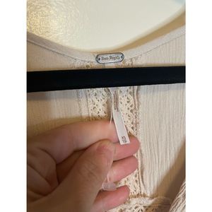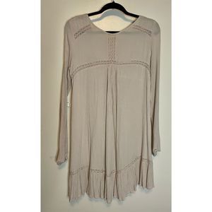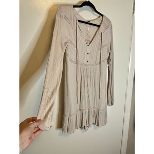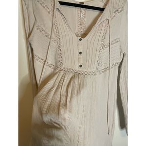 Free People Size XS Oatmeal Tunic/Dress Henley Tassel Crochet Panel Long Sleeve