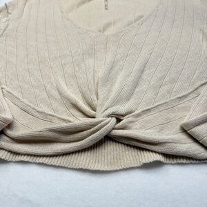 Free People Size XS Tan Cream Tie Front Crop Blouse