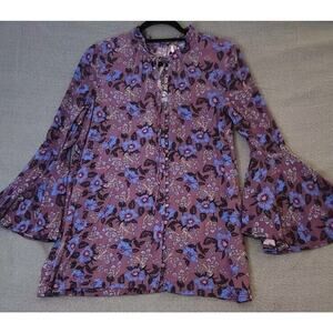 Free People Size XS Women’s Purple Magic Mystery Tunic Bell Sleeve Tunic Top