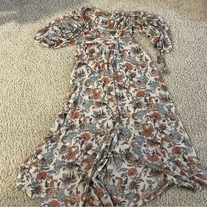Timeless maxi dress featured in a button-front, V-neck silhouette with ruched sleeves and beautiful floral print.