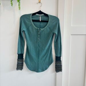 Free People Ski Alpine Knit Thermal Cuff Button Closure Women's Long Sleeve XS