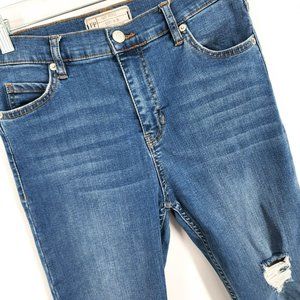 Free People Skinny Jean 28 Medium Wash Distressed Sharkbite Cotton Denim Stretch