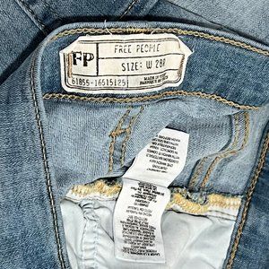 Free People Light Wash Distressed Skinny Denim Jean. 89% Cotton/9% Polyester/2% Spandex