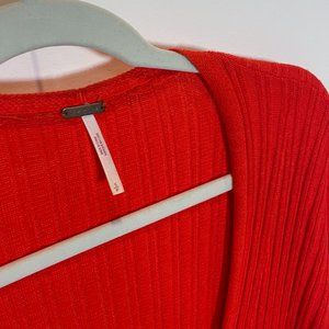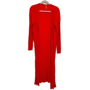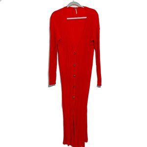 Free People Skinny Ribbed Knit Long Cardigan Duster with Side Slits
