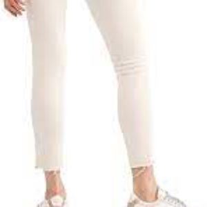 Go for the ultimate in sleek with these Free People jeans in a super stretch denim skinny for an amazing fit. A raw hem updates the look. Zipper and button closure, belt loops. Cotton/Polyester/Elastane Measurements waist flat 12.5”….front rise 9”….inseam 27” A lovely tea stained look color stands out against white, blacks or browns. Ankle length…Year Round wear
