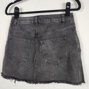Free People Haven Denim Miniskirt Frayed Hem Zip-Up Dark Gray Y2K NWT - 28"