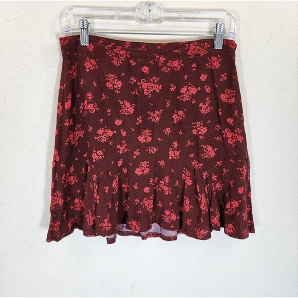 Free People Skirt Size 4 Maroon Floral Ruffle Hem Mini Drop Waist Boho Rayon
