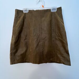 Free People Skirt Women sz 0 Brown Olive Modern Femme Vegan Leather A Line Mini. Preowned great condition.