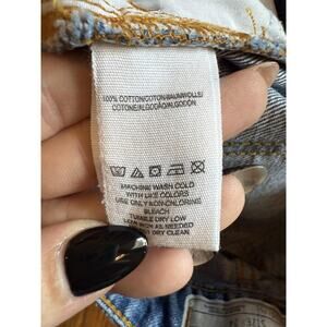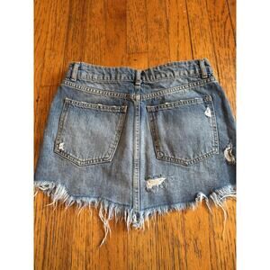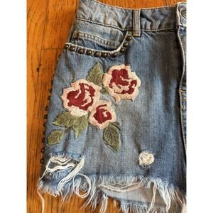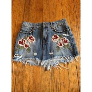Free People Skirt Womens 24 Denim Embroidered Floral Studded Frayed Hem Mini