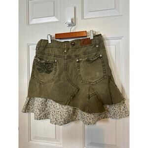 Free People Skirt Womens 28 Olive Green Y2K High Waisted Distressed Flare Mini