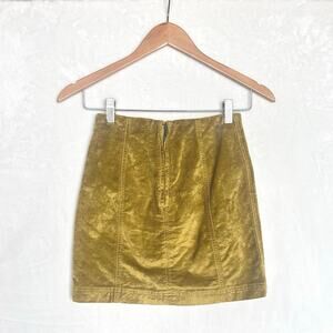 Free People Skirt Women’s Size 0 Olive Green Velvet Mini Boho Y2K Indie Festival