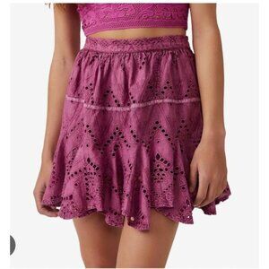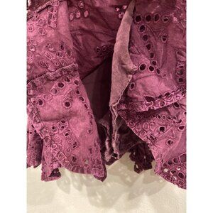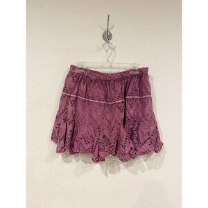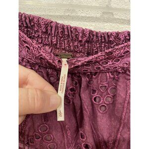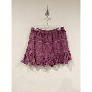 Free People Skort Womens Large Purple Boho Eyelet Embroidered Pull On Festival