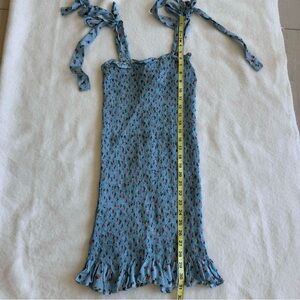Free People Sky Blue Floral Smocked Square Neck Tie Shoulder Dress Size XS