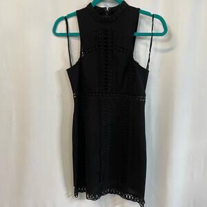 Free People Sky Scraper Black Mini Dress High Neck Sheer Women XS
