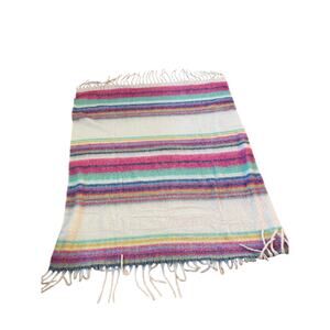 Free People Skye Stripe Fringe Throw Blanket Pink Cream Blue