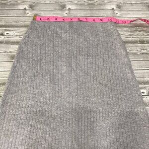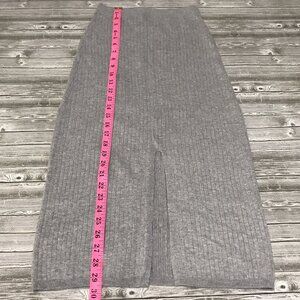 Free People Skyline Pencil Stretch Ribbed Midi Skirt Size XS Grey Front Slit