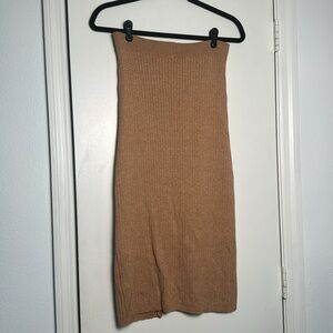 Free People Skyline Rib Midi Skirt Size Small Camel Front Slit