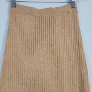 Free People Skyline Rib-Knit Midi Skirt sz XS Caramel Heather minimalist neutral