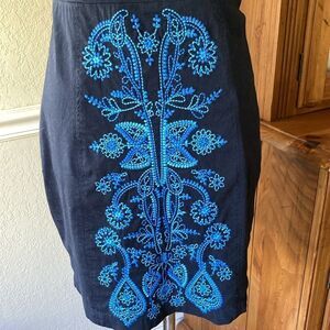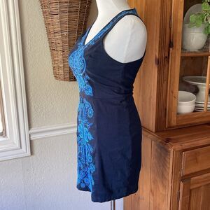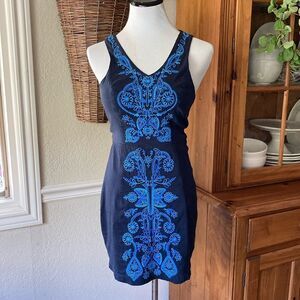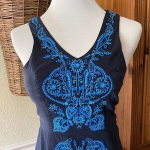 Free People Sleeveless Navy Embroidered Lined Mini Dress Size Small