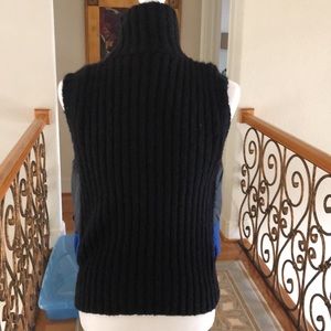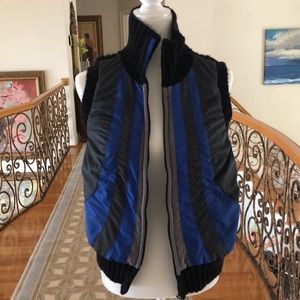 Free People sleeveless zip up vest with pocket detail. Has a black sweater back and front blue design is puffer like (see pics for material breakdown).