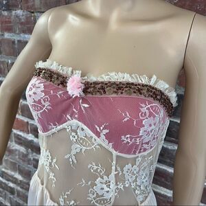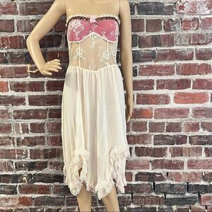 Free People Sleeveless Slip Dress Womens Size Small Sheer Lace Boho Pink Floral