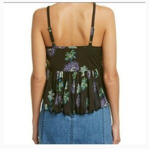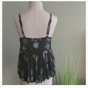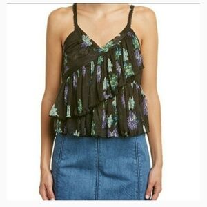 Free People Sleeveless Top Semi Sheer Floral Layered Ruffled Black Blue L NWT