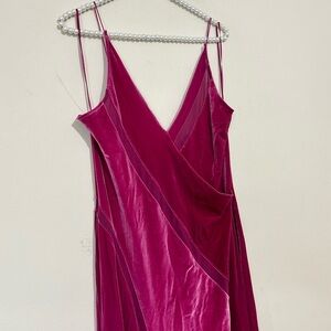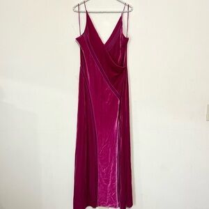 Free People Sliced Velvet Magenta Pink High Split Maxi Dress SIZE MEDIUM