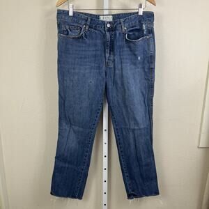 Free People Slim Boyfriend Distressed Raw-Hem Crop Denim Jeans Size 30 High Rise