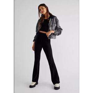 Free People Slim Pull On Velvet Flare Pants Black Size XS