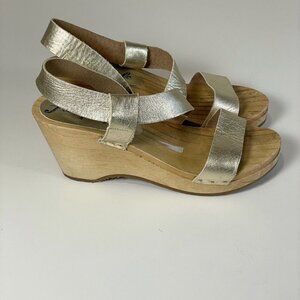 Free People Slingback Strappy Wedge Sandals Metallic Gold Size 37 Leather Heel