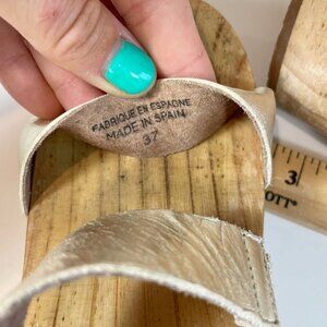 Free People Slingback Strappy Wedge Sandals Metallic Gold Size 37 Leather Formal