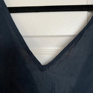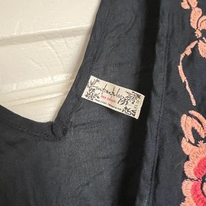 Free People dress from its intimates section but I have used it as a swimsuit coverup! There's a little bit of pulling in the back (in photo), but in great condition otherwise! It's a beautiful navy with pink floral embroidery.