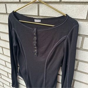 68% viscose, 32% polyester. Gusset snap button closure. Thumbhole design. Jersey fabric with raw-cut invert trim. Size M. Excellent used condition.