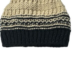free people stripe pom pom beanie, black cream knit hat, wool acrylic beanie women