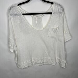Free People Slouchy Cropped Oversized Linen Blend Cream Tee Shirt Sz Small