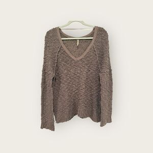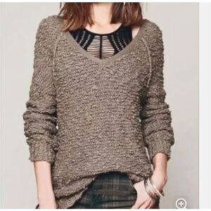 Free People Slubby Knit Cotton V Neck Sweater Size XS