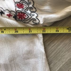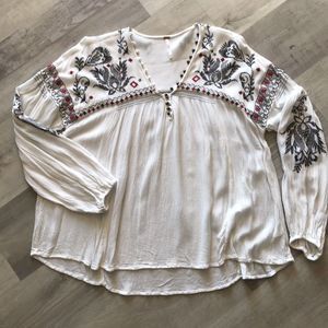 Free People Rock It Tonight Blouse Floral Embroidered Long Sleeve Small Hippie Peasant Prairie Lagenlook Summer Cottage Has a few small snags as shown in last photo.