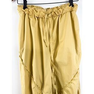 Free People Small Beach Life Mustard Yellow Pants With Eyelet Ruffle Oversized.