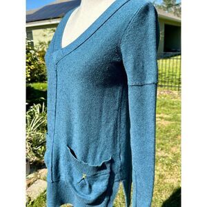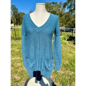 Free People Small Blue Long Sleeve Tunic Sweater with Pockets Wool Blend