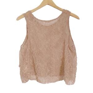 Free People Small Dusty Pink Sheer Floral Cropped Tank Top