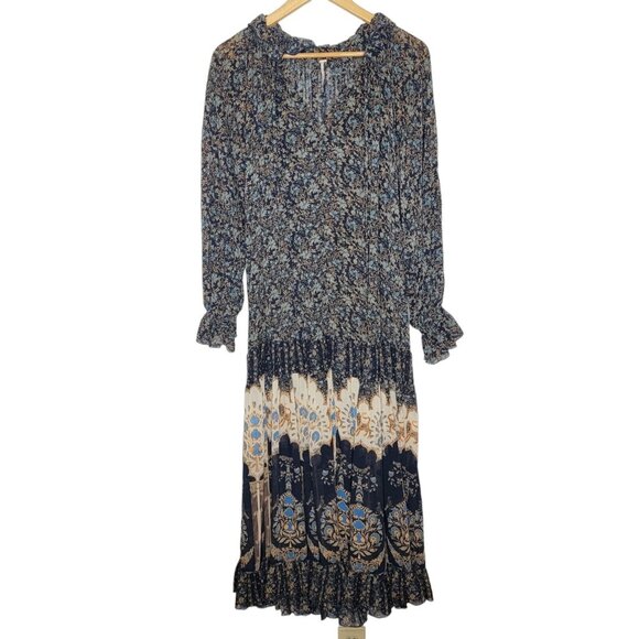Free People Small Feeling Groovy Border Print Maxi Dress Boho Oversized Festival