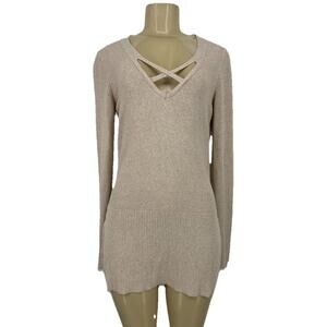 Free People Small Women Criss Cross Sweater V Neck Side Slits Tunic Long Sl S5v