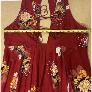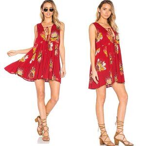 Free People Small Women LOVELY DAY Tunic Red Floral Boho Mini Dress Tie Up