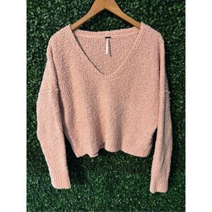 Free People Small Finders Keepers V-Neck Knit Sweater Nude Peach/Pink $108