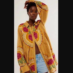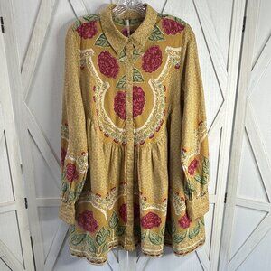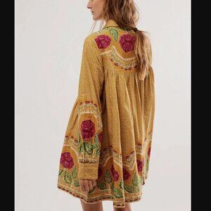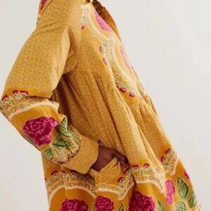 Free People Smell The Roses Mini Dress in Mustard Combo