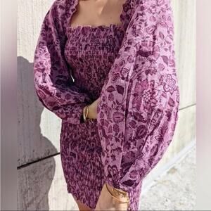 Free People Smock It To Me Mini Dress L Azalea Combo