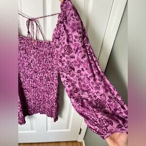 A sweet and swingy Free People mini dress for your springtime wardrobe. This piece features a vintage-inspired print, and juxtaposes voluminous sleeves with a smocked body. Wear yours with everything from kitten heels to sporty sneakers.